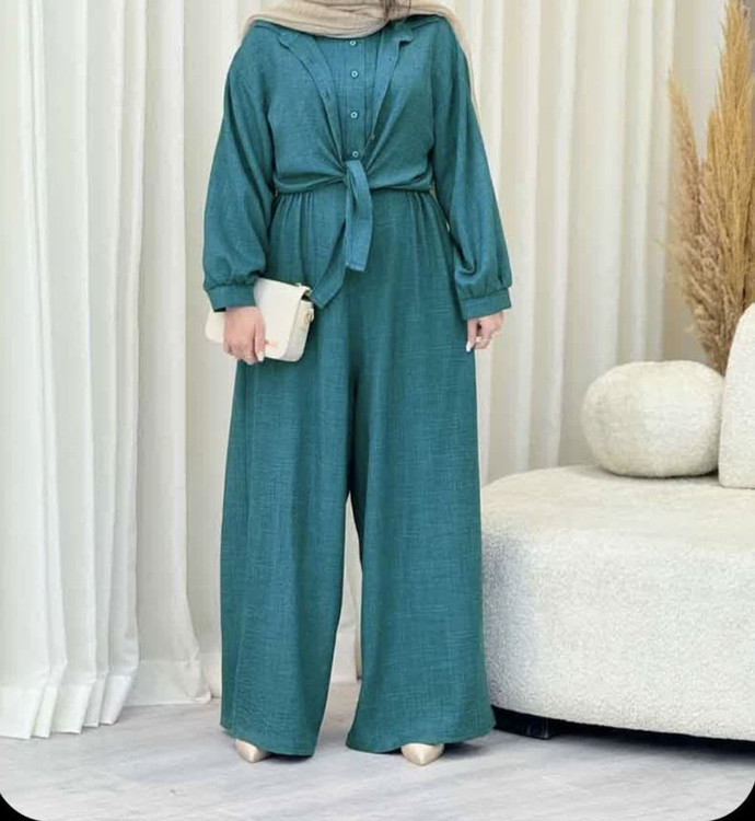 اندازه قد شومیز حدود 46سانتی متر است و اندازه تقریبی قد آستین نیز 57 سانتی متر است و پشت کار نیز ساده می باشد.